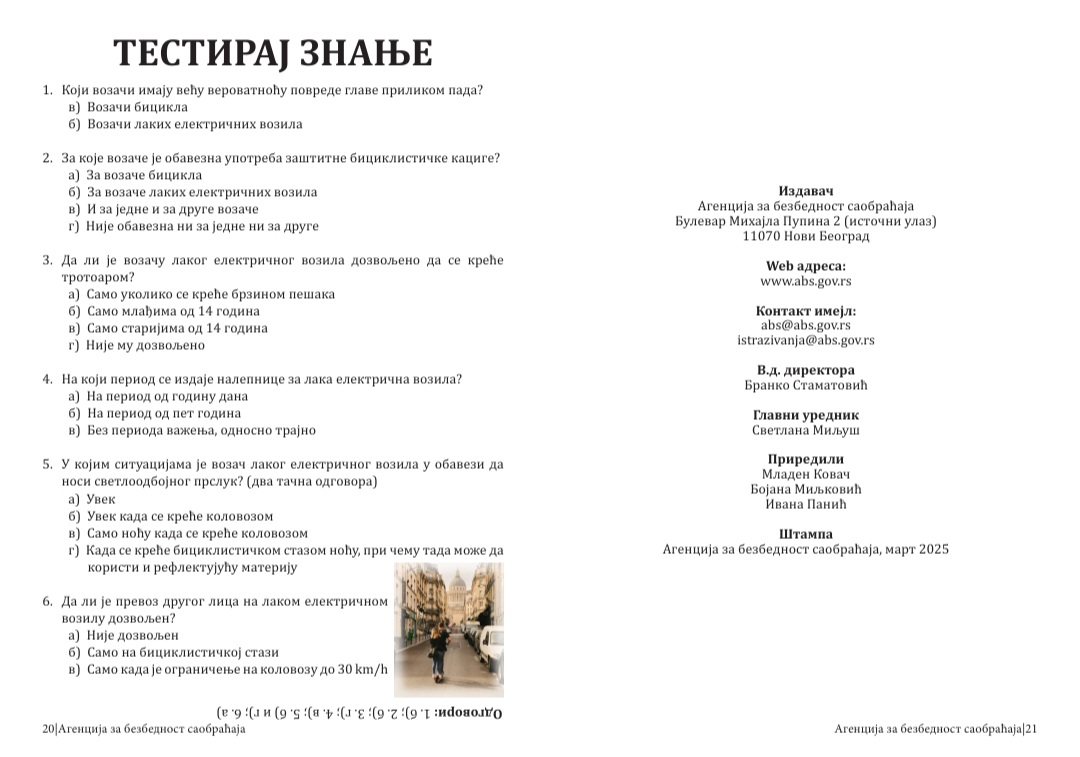 - лаким електричним возилом на јавним путевима не сме управљати лице млађе од 14 година;