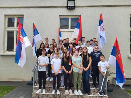 Тим поводом, ученици од првог до осмог разреда поносно су се фотографисали заставом Републике Србије истичући њен значај за наш народ.